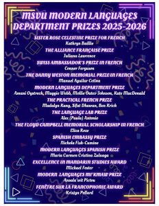 On Thursday April 4, the MODL department held a very beautiful ceremony at the “Meadows” to present the recipients of the 2023-2024 student awards. Parents, friends, staff, students and their professors gathered to celebrate student success in a relaxed atmosphere. Congratulations to all!!