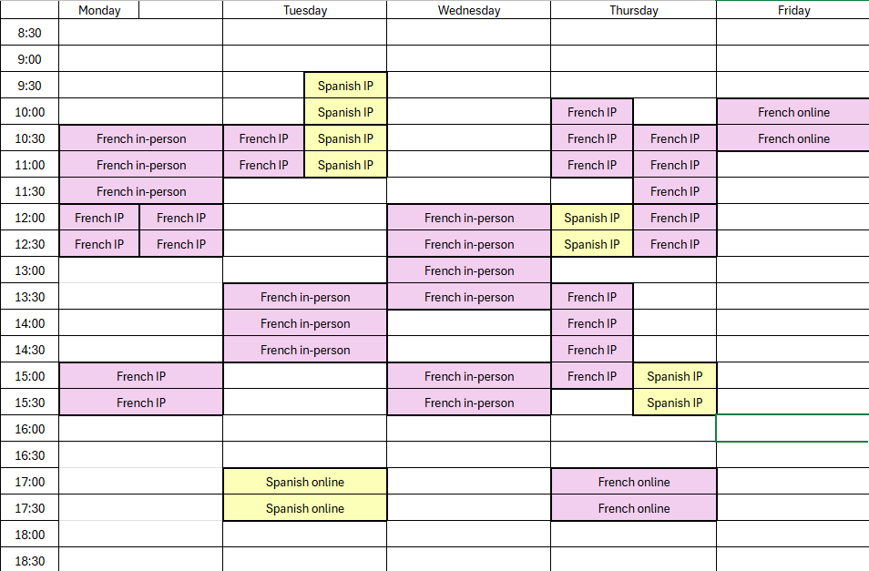 To sign up for conversations, please go to the Language Lab Moodle page.