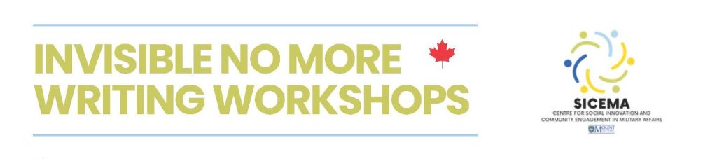The Invisible No More (INM) Project Team at Mount Saint Vincent University is inviting women Veterans to participate in an online writing workshop series. This series is aimed at supporting CAF and RCMP women Veterans in developing their voices as writers and advocates, and is not a research study.