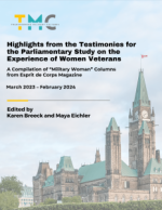 The INM project co-leads, Maya Eichler and Karen Breeck, edited a compilation of “Military Woman” columns found in Esprit de Corps magazine between March 2023 – February 2024. This resource was curated as part of the Transforming Military Cultures (TMC) Network in 2024.